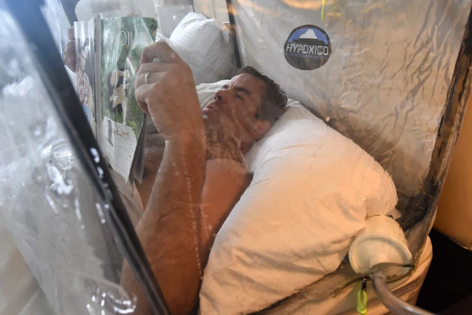 But at night he would climb into a hypoxic, or low oxygen, tent meant to mimic the thin air at high altitude.
