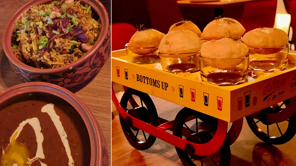 Visual assault complete, it's the food's turn to attack you. Chef Mural takes no prisoners with the pani puri shooters (S$12) that your server insists that you order. They're non-alcoholic, he assures you, although he doesn't warn you that the innocent-looking snacks are lethal weapons served on a whimsical toy wagon.