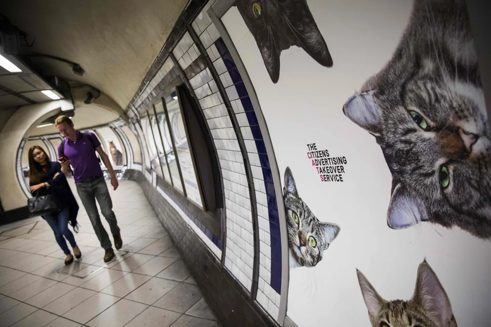 Passengers travelling through Clapham Common station this week have noticed something is awry, with dozens of cats peering down from posters which previously displayed advertising.