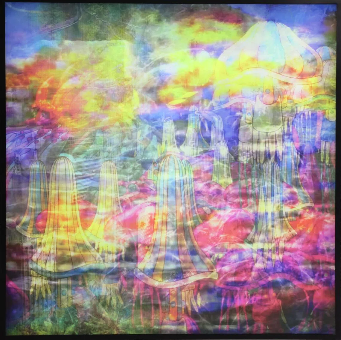 A cornerstone of this collection is Ho Tzu Nyen’s CDOSEA: Square Stack (Landscapes) (2019). The work features a lightbox with 26 images that are ever-moving, overlaid images created from viewers walking past.