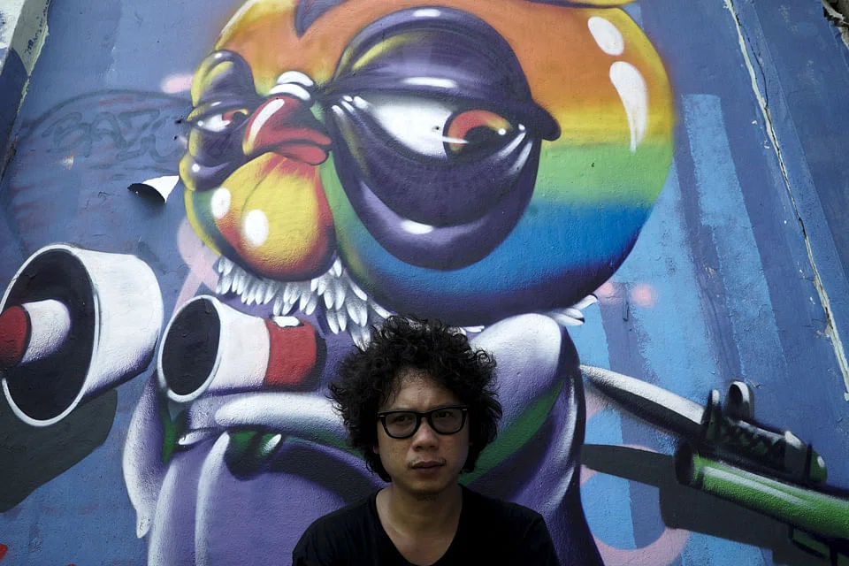 ON a wall in a northern suburb of Bangkok "Asin Acid" puts the finishing touches to a spray-painted picture of a colourful giant chicken holding a broken loudspeaker. "The loudspeaker represents the media. The media is trying to say something but is being interrupted," said Asin, who uses a pseudonym for his street art to protect his identity and said that he is inspired by Cranio, a graffiti artist from Brazil.