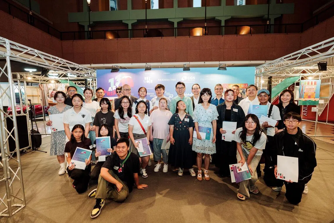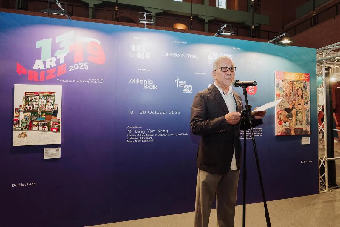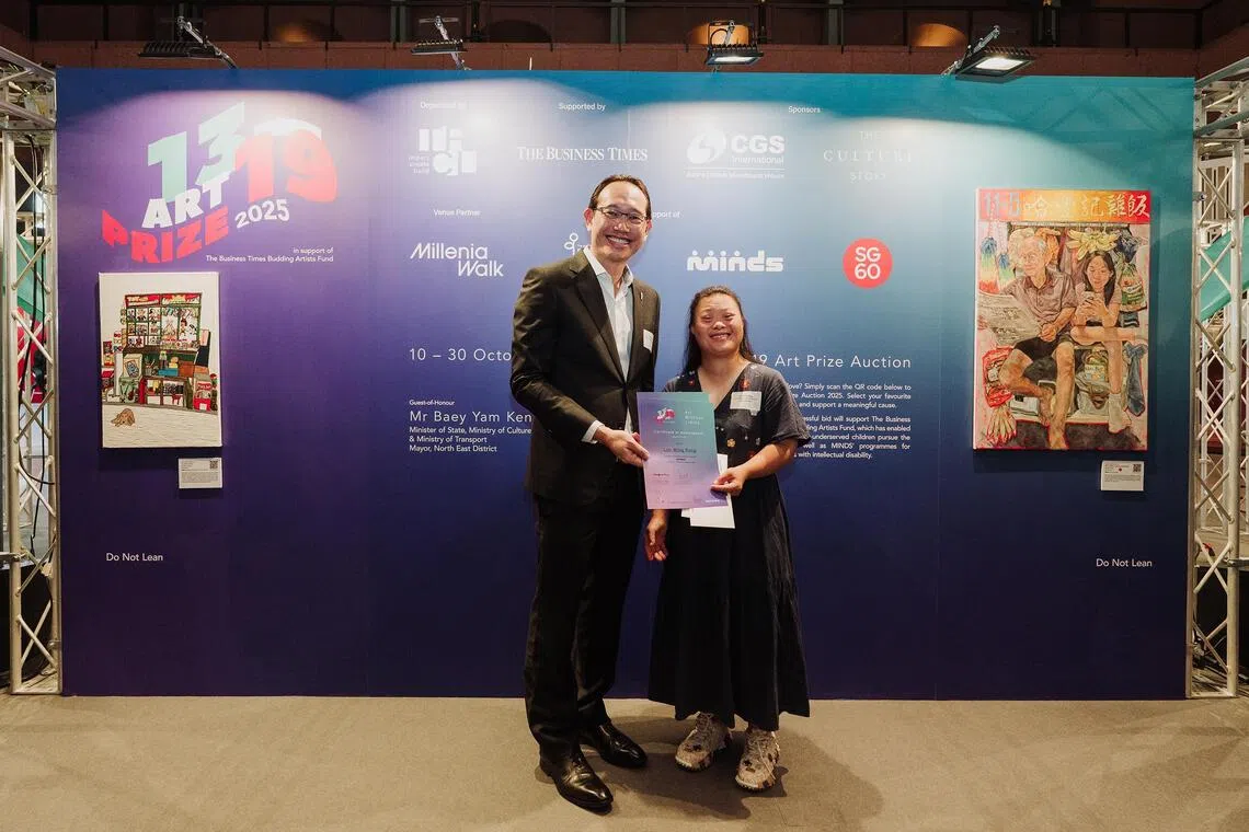 At the recent awards ceremony at Millenia Walk, Minister of State for Culture, Community and Youth Baey Yam Keng presented the prizes to the winners. Their paintings are now being auctioned to raise funds for the Business Times Budding Artists Fund (BT BAF) and the Movement for the Intellectually Disabled of Singapore (MINDS).