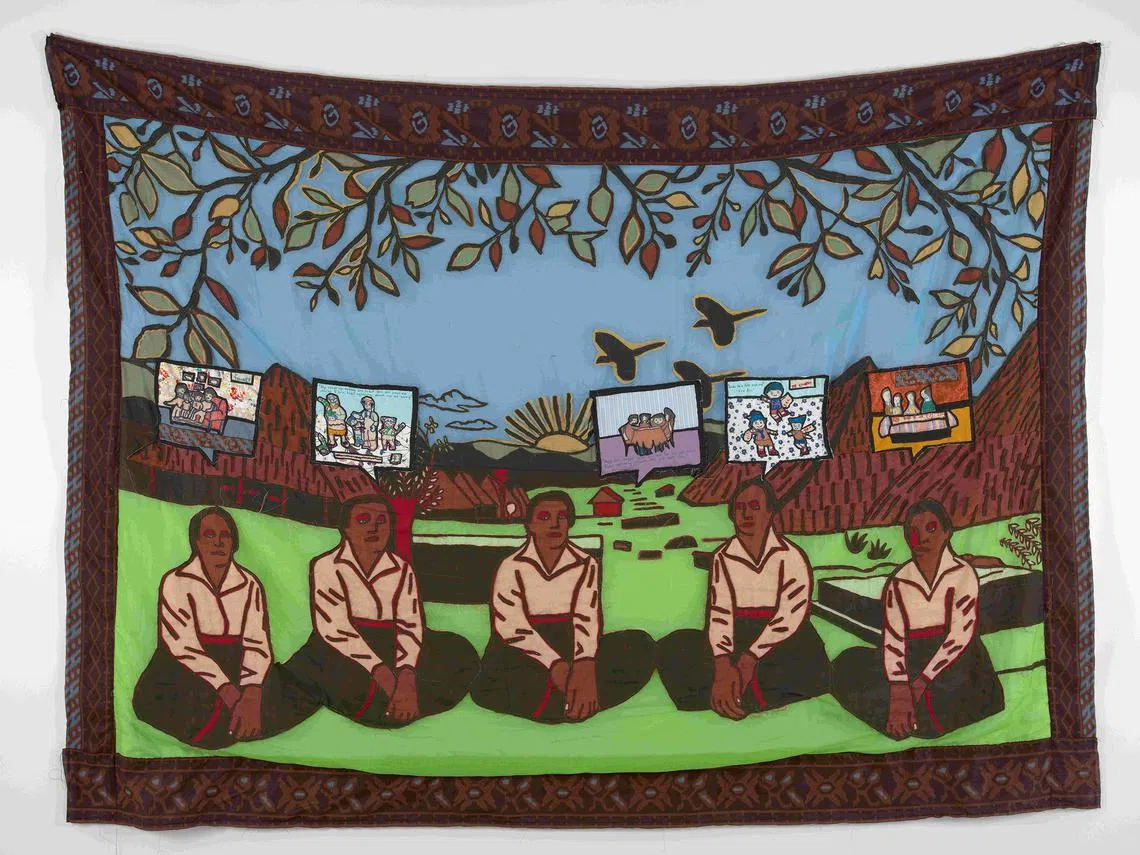 Highlights include Ari Bayuaji’s Weaving the Ocean, which turns discarded plastic ropes from Bali’s beaches into hauntingly beautiful tapestries. There are also Gunes Terkol’s fabric collages telling stories of women she encounters, Aziza Shadenova’s textile installation celebrating female domesticity and hospitality, and other gems.