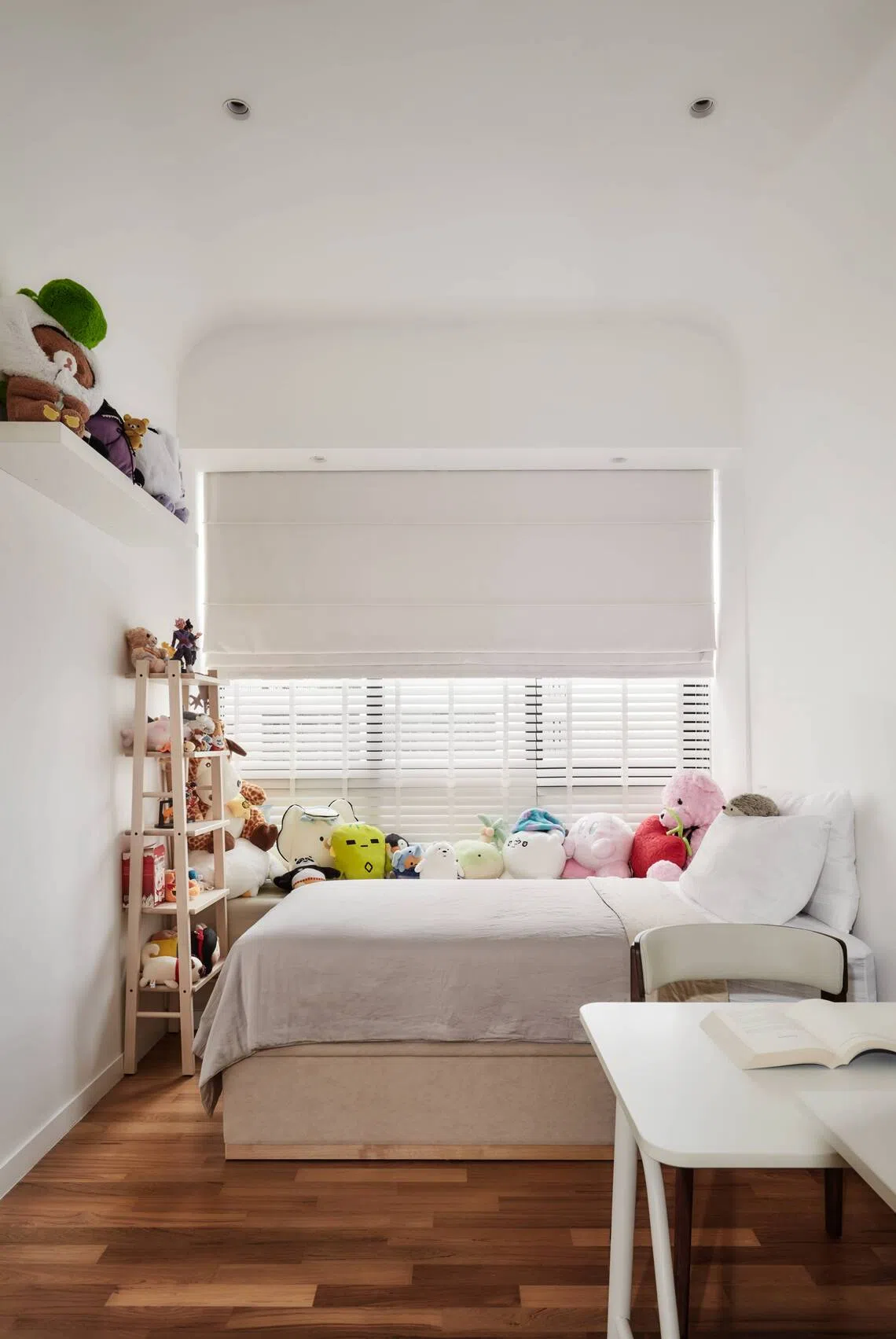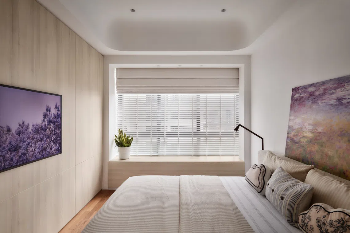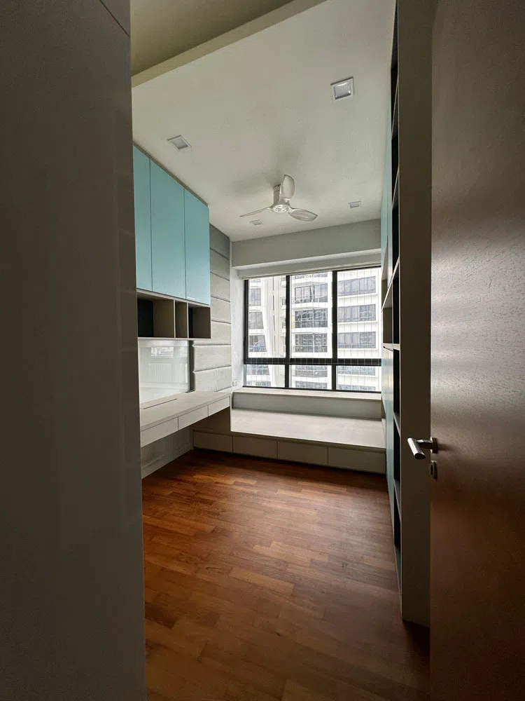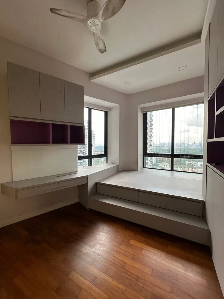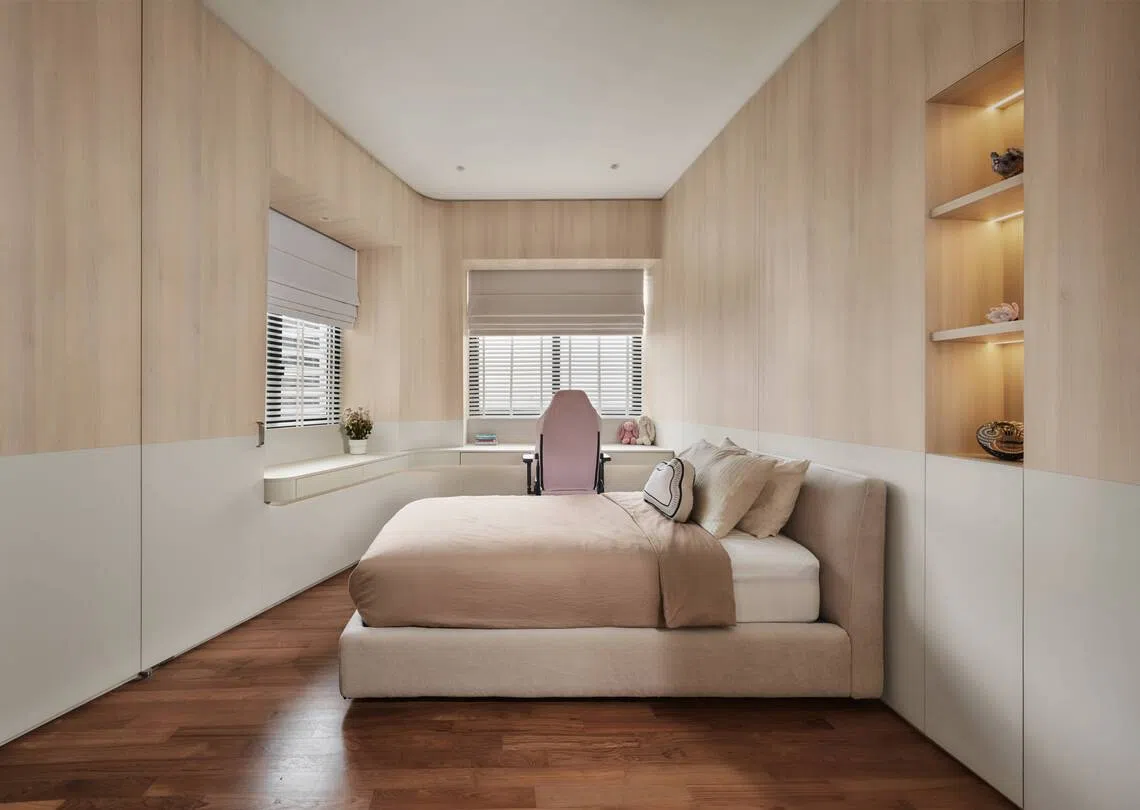 Similarly, an extended desk was built over the bay windows in the daughter’s bedroom. It is so well incorporated into the interiors that the original structure is no longer discernible. Puah could even take some space from the enlarged master bedroom next door to create an additional built-in wardrobe.