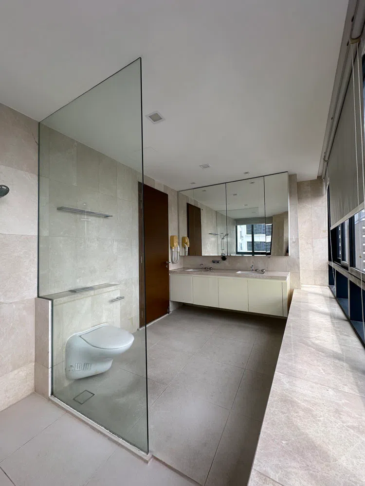 “This split not only disrupted the panoramic view, but also left the main living space narrow and compressed,” he says, pointing out that it was “an unfortunate flaw”, given the prized vistas from the apartment’s lofty perch above the 20th floor.