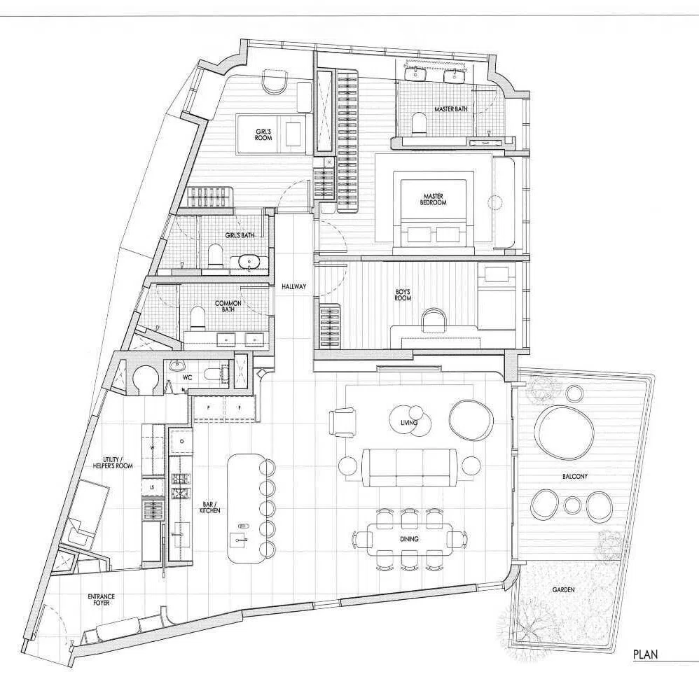 For starters, the original layout suffered from an odd division: a large balcony was shared between the living room and a narrow adjacent room.