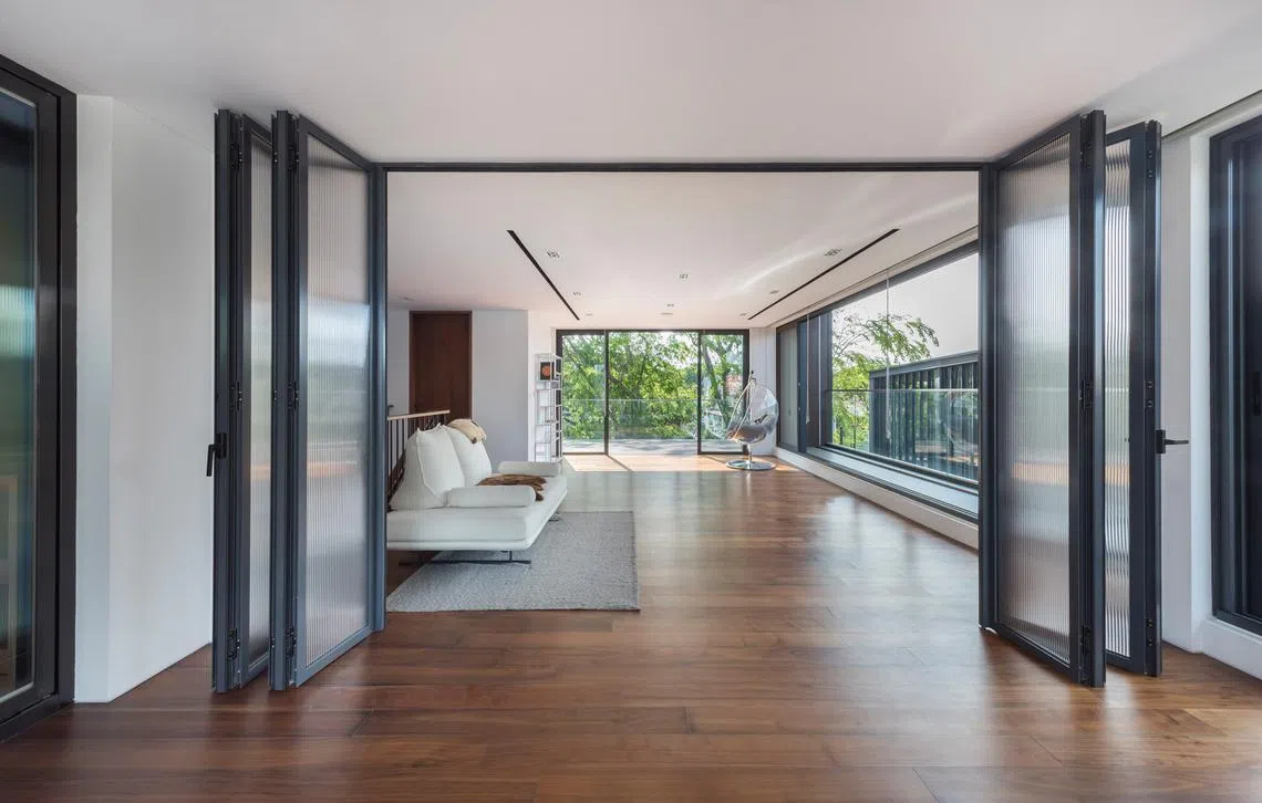 The original idea of building two en-suite bedrooms in the attic was also scrapped, so the Angs have the flexibility of adjusting the expansive space – which can be divided by foldable glass doors – to meet future needs. One of the attic bathrooms was also converted into a wine cellar large enough to hold 1,000 bottles.