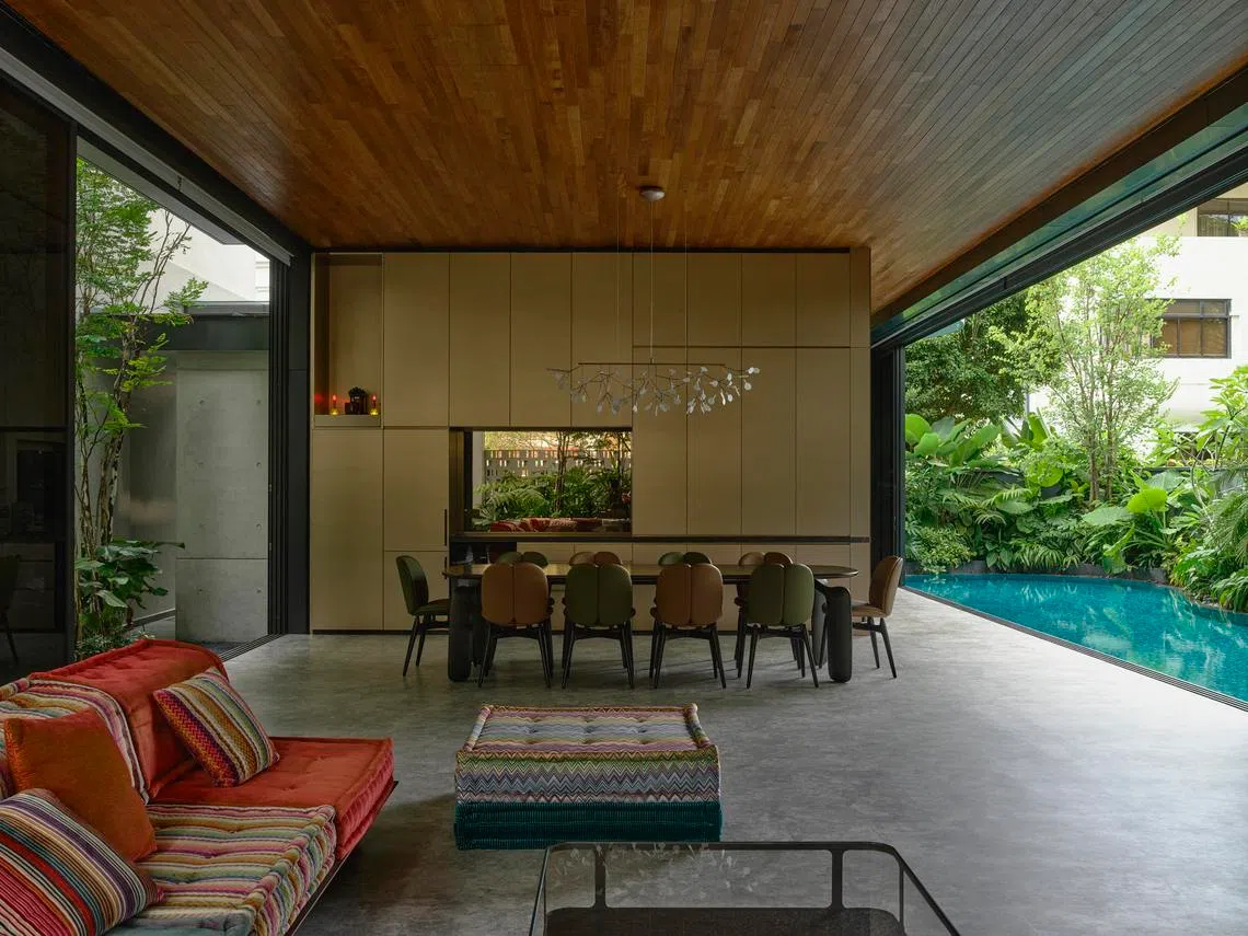 Located in Siglap, the 5,700 square foot semi-detached house was designed for an extended family comprising the owner, his wife and two adult daughters – one married with two children – living under the same roof, explains HYLA’s founder, Han Loke Kwang.