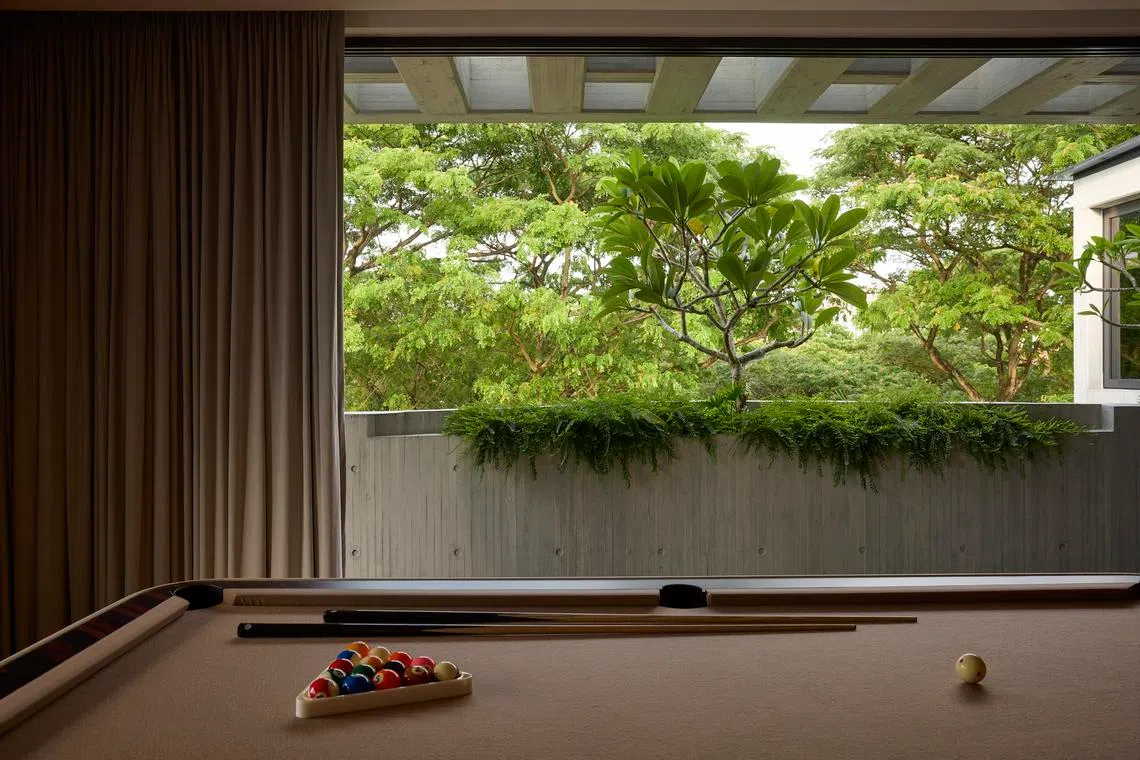 For better privacy, the staircase and lift were positioned at the foyer, so there is direct access to bedroom and entertainment areas. “This minimises the need to pass through shared living areas, supporting multi-generational living and (the couple’s) frequent late-night social gatherings,” Han explains.
