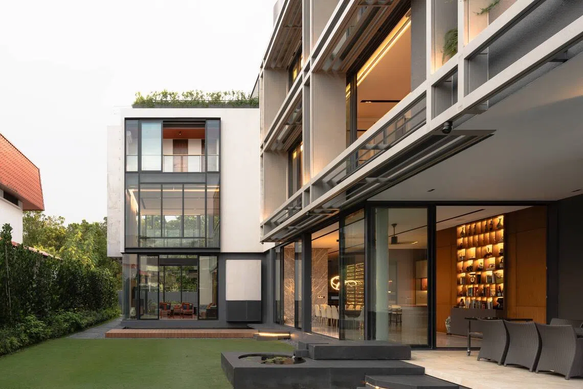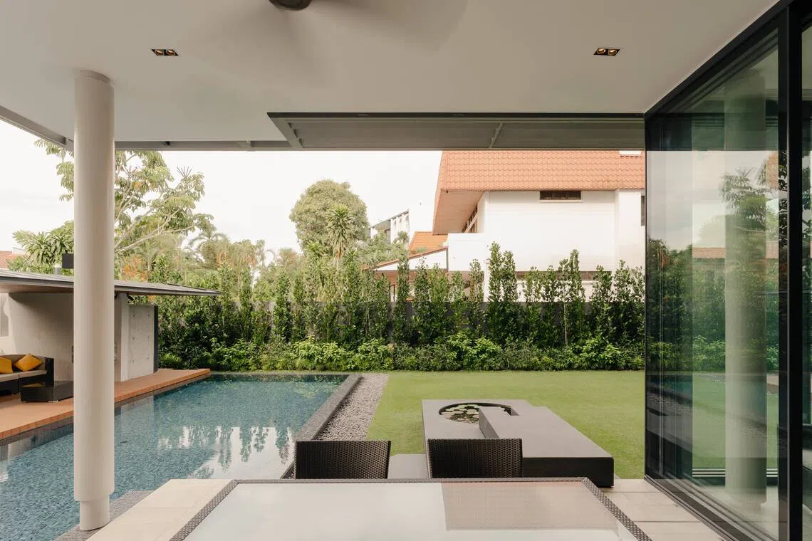 This bungalow in the Bukit Timah area is centred around a tranquil private lawn