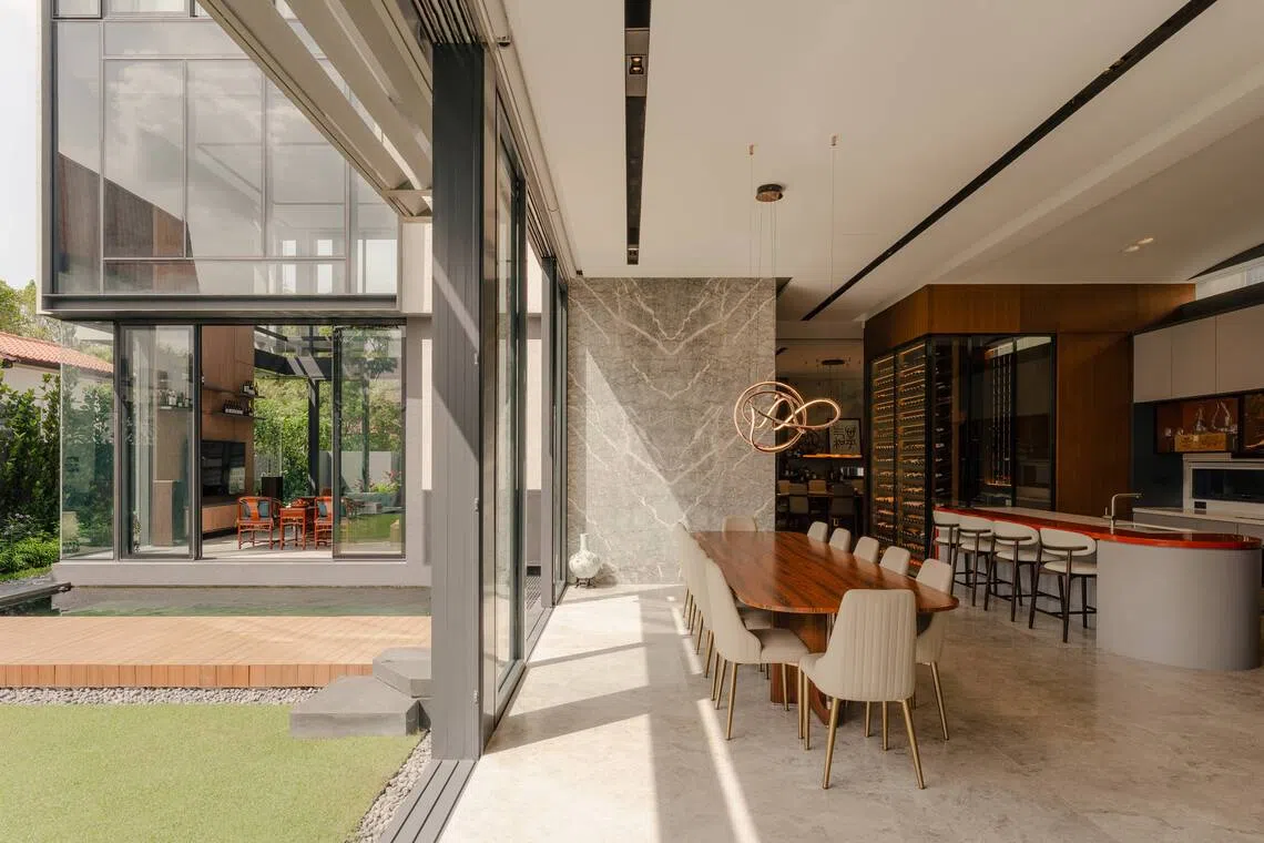 When they bought an 80-year-old bungalow in the Bukit Timah area, the family – comprising a couple and their adult son – wanted the 9,637-square-foot (sq ft) plot turned into a multigenerational home, where they could comfortably host everything from dinner to lawn and pool parties.