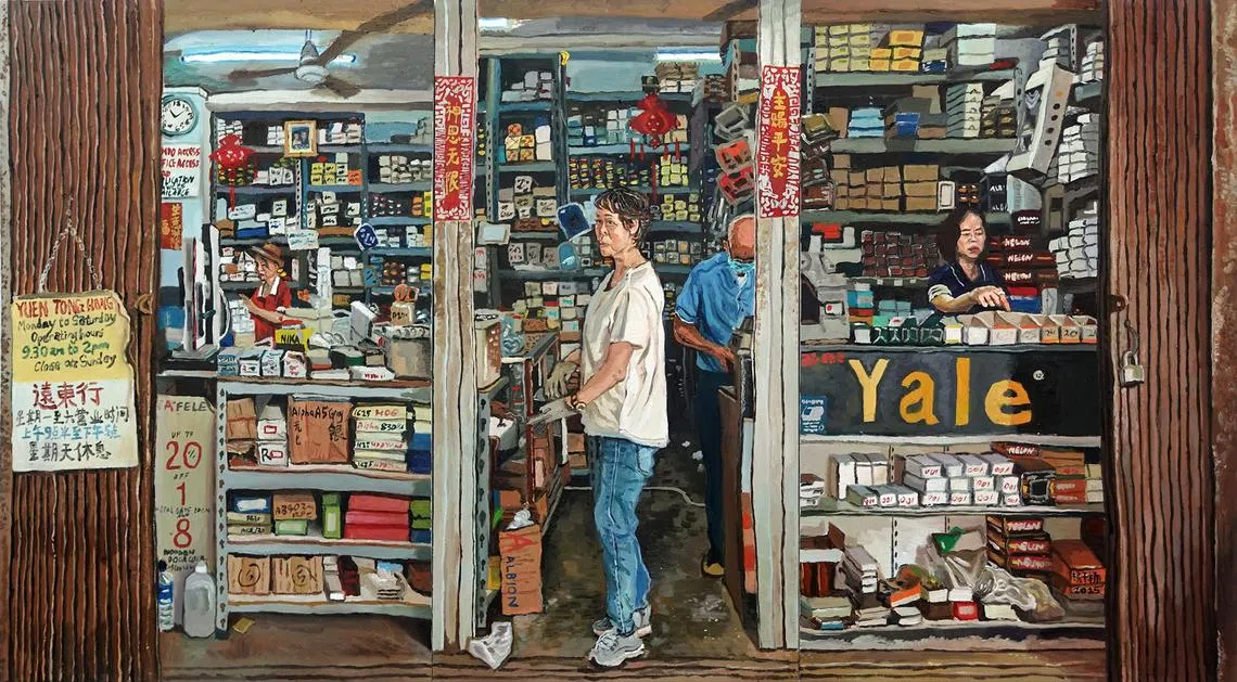 Fost, another pioneering gallery in Gillman, is showcasing The Lie Of The Land: Sediments. It brings together eight local artists to reflect on Singapore at 60. Taken together, the works suggest how history, memory, and people build upon one another over time, like layers of sediment. Kray Chen’s playful speaker sculpture recalls childhood pleasures of listening to the radio, while Yeo Tze Yang’s painting of a family locksmith shop preserves its warmth and community. Grace Tan’s fragile brick installation and Wyn-Lyn Tan’s shifting landscapes show how balance is never fixed, while Lavender Chang’s photo of election rally crowds captures a fleeting moment of collective life. The show quietly asks: what holds us together, and what shifts beneath our feet?