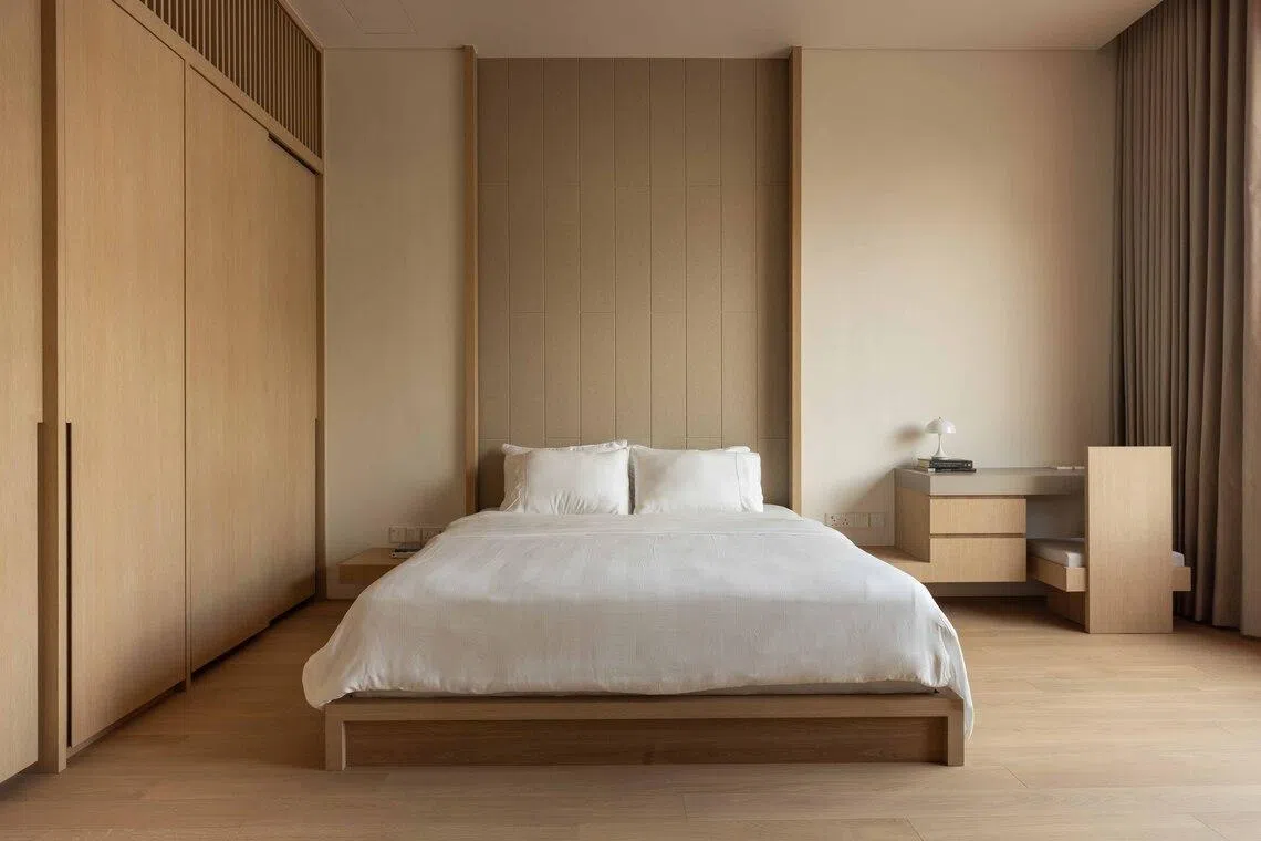 “The problem with multiple windows is that they look cheap, like there’s no thought process at all behind them,” says Keng, pointing out that the smaller apertures are sufficient for ventilation. “Secondly, you don’t want vertical lines blocking your view when you look out.”