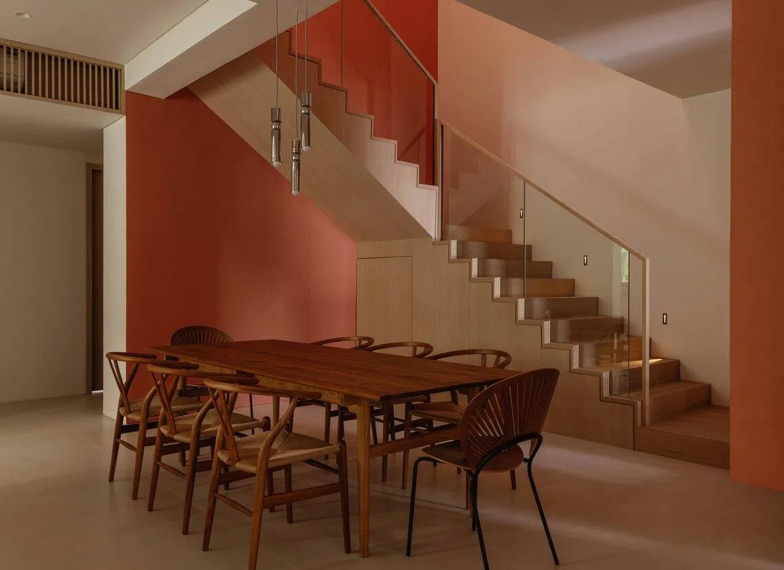 Says Keng of the terracotta red colour one first glimpses in the entryway: “In our work, we like to create a little surprise.