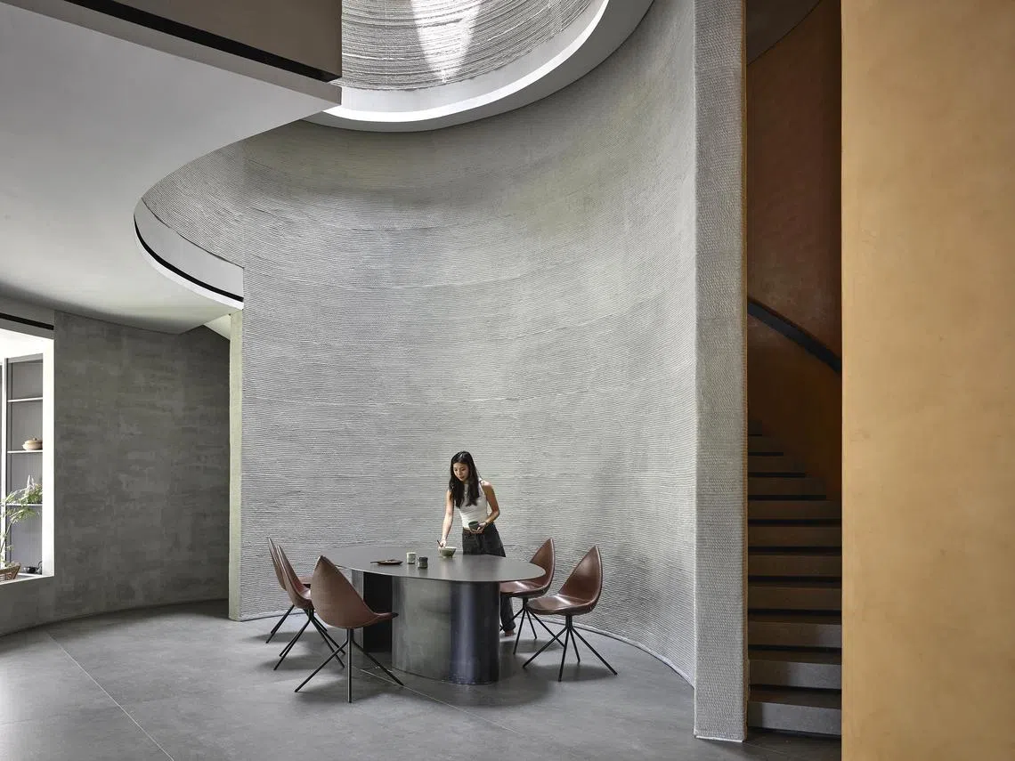 Built on a 3,531-square-foot plot, the 6,130-square-foot residence is both elemental and expressive – a home where light and shadow fold into daily life, and every surface bears the quiet trace of its 3D-printed origins.