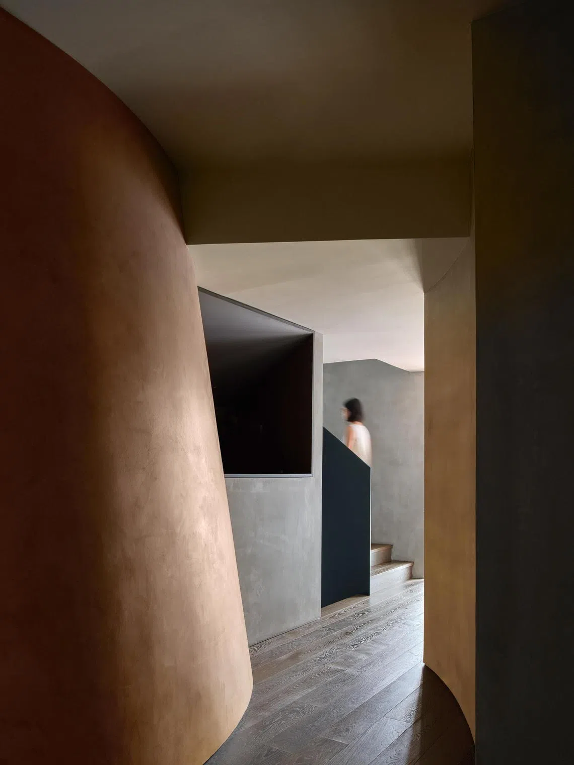“The cone defines the way the house is configured,” Lim explains. “Every room has a reminder of it. The space-making elements curve around it, responding to it. It’s not decorative. It’s spatial.”