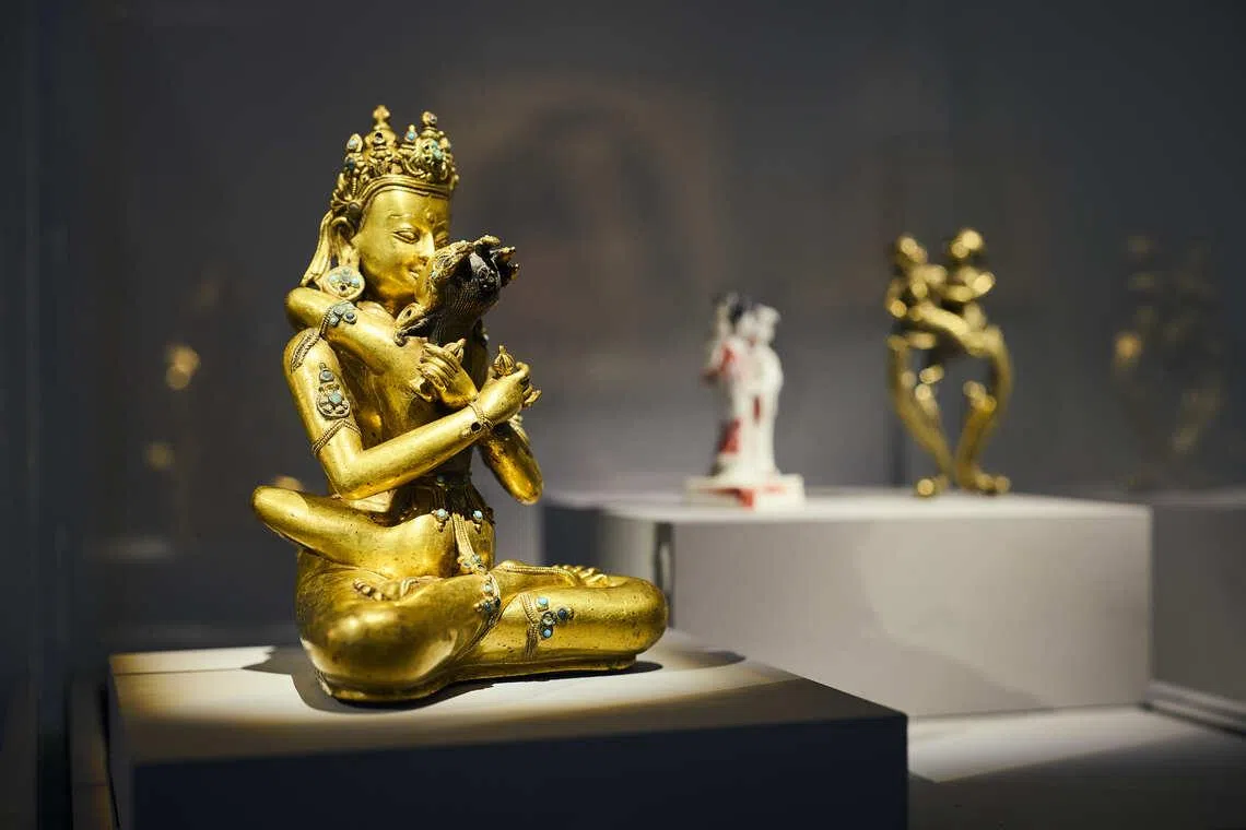 Some works place desire within a spiritual framework. A 14th-15th century sculpture of Vajradhara and Prajnaparamita shows two figures embracing and kissing – a physical union representing balance and enlightenment, rather than something taboo.
