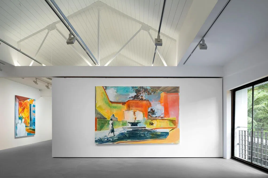 Dawn Ng forgoes the conventional gallery space, presenting her paintings instead on the theatre stage of Singapore Repertory Theatre in Robertson Walk – blurring the lines between exhibition and scenography.