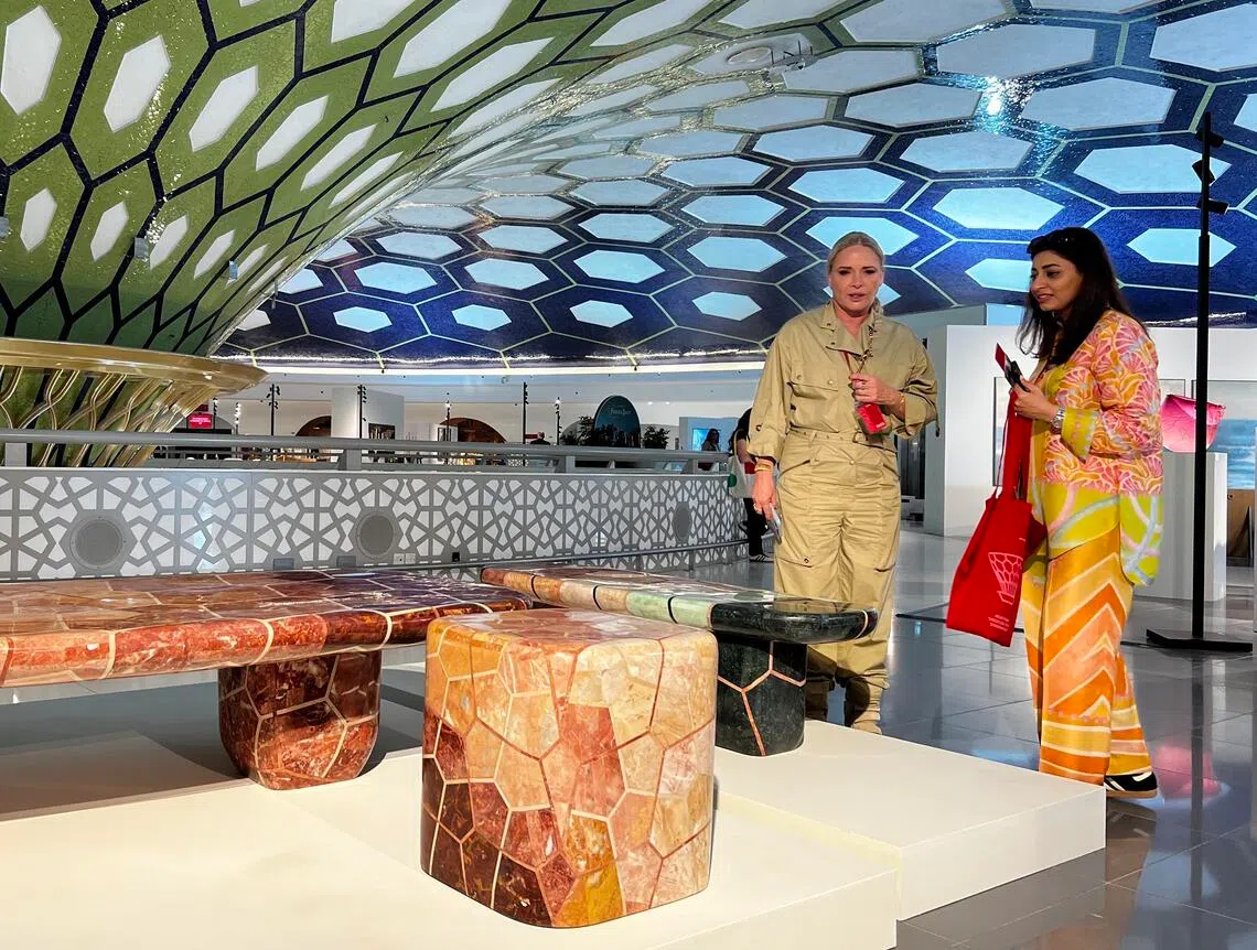 “Debs is one of the most important female designers from the Middle East,” Saint-Laurent notes. “And the stone inlay – people here recognise it immediately. You see similar patterns in mosques, in this airport, in the region’s architecture.”