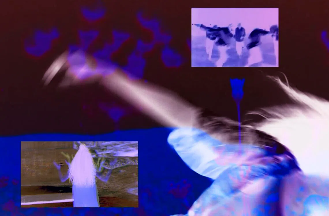 One of Barakat’s standout works is a piece by Palestinian-descent artists Basel Abbas and Ruanne Abou-Rahme, who splice sights and sounds from conflict regions into “desktop performances” – multi-screen collages assembled live on a computer interface.