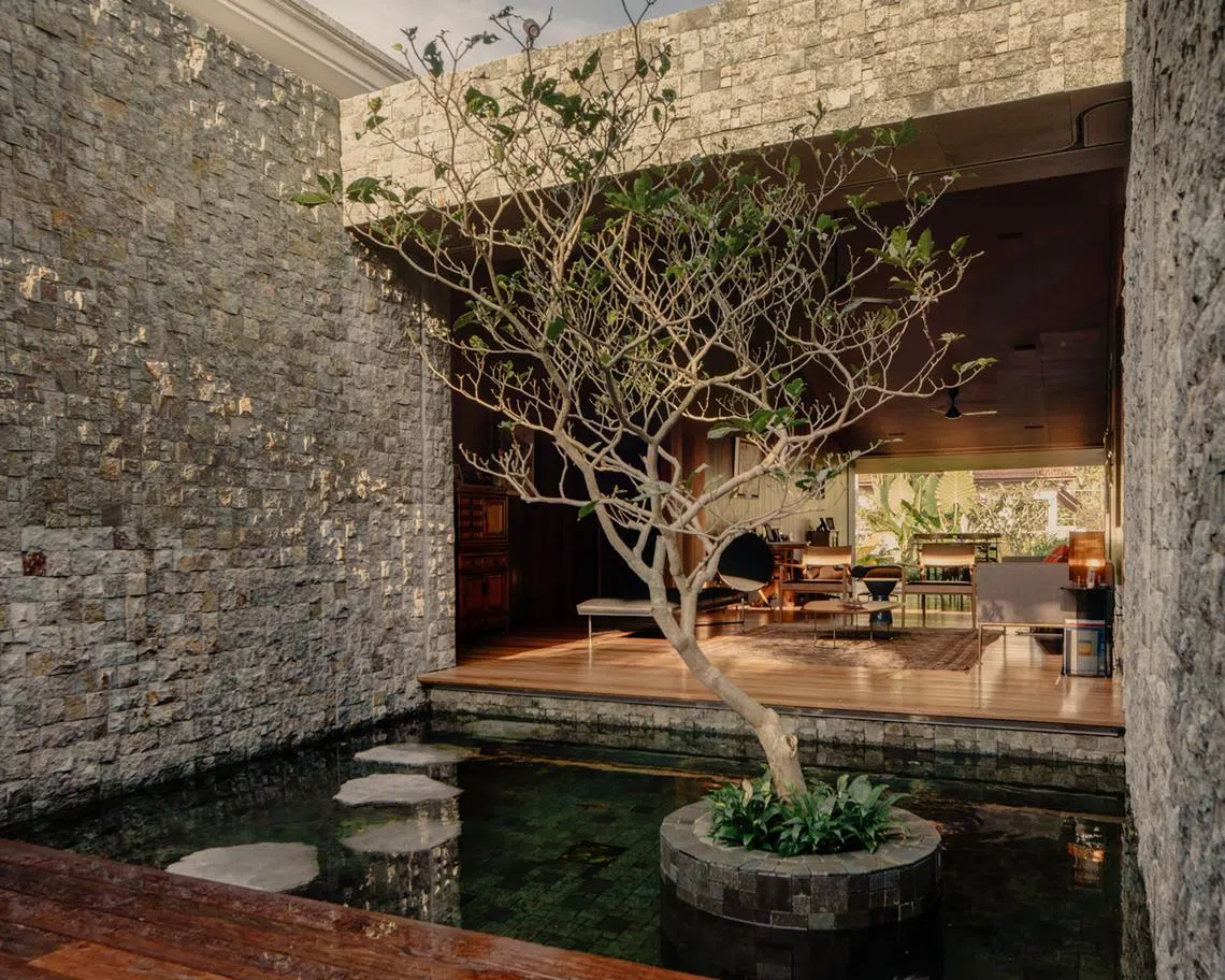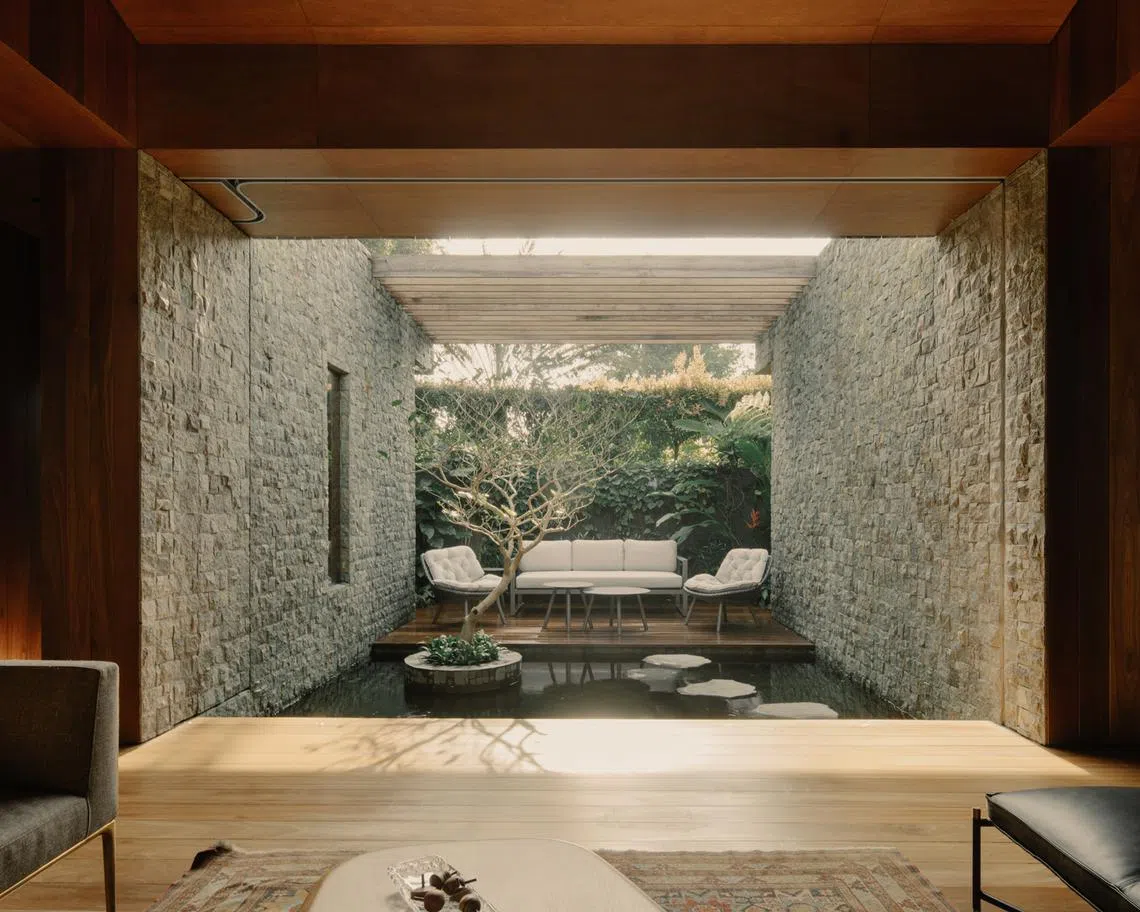 And that perhaps, embodies the house’s nondescript character. From the outside, its humble proportions and rubble wall both protect the house from prying eyes and is an ode to the past – a vernacular scale that creates a calming, homely and welcoming abode.