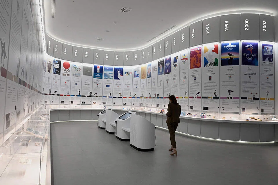 Alongside video screens and wall-to-wall displays on the history of the ancient and modern Games, the museum showcases all of the torches used in the flame relay, starting with the one used in Berlin in 1936.