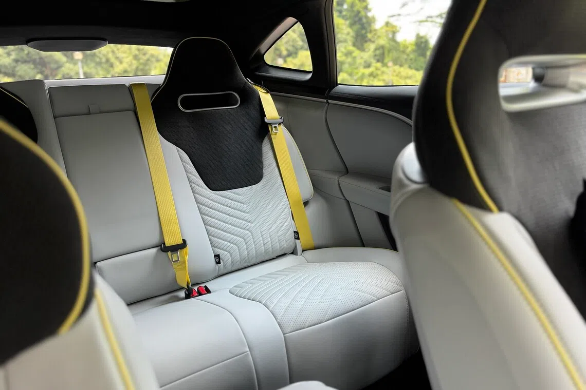 You might not have expected air suspension for the price, but it’s surprising that the climate control is a simple two-zone setup. And all three rear passengers have to share a single USB-C port. The boot is passably big at 490 litres (with a 95-litre frunk), but it lacks practical touches such as hooks and nets. Perhaps the car’s biggest sin is how the panoramic glass roof lacks a sunshade, which isn’t a good idea in our climate.