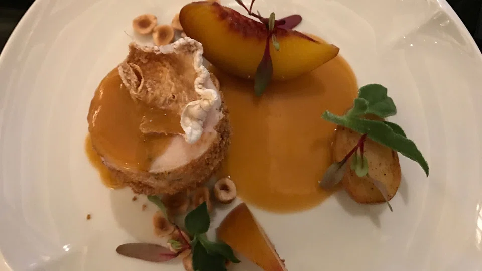 Also decent is a simple sous vide chicken breast (S$30) shaped into a perfect roll and topped with crispy chicken skin that tastes almost like pork crackling. Peaches and crunchy hazelnuts are a happy twist.