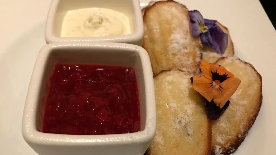 Dessert is where the chef is in his element, turning out something as simple and elegant as perfectly warm, toasty madeleines with delicious crispy edges (S$18), served with homemade jam and unsweetened cream.