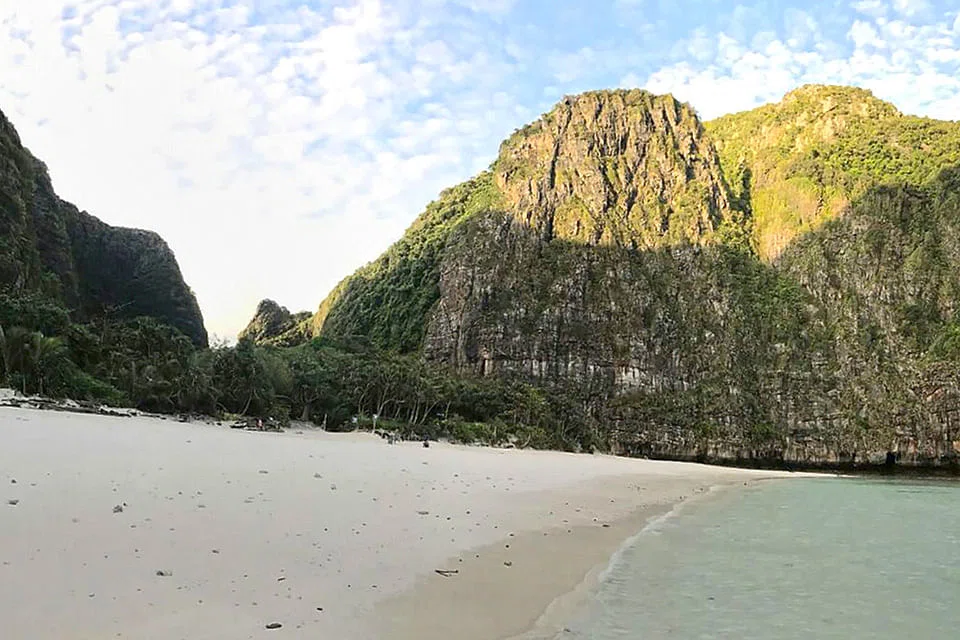 Maya Bay, ringed by cliffs on Ko Phi Phi Ley island, was made famous when it featured in the 2000 film starring Leonardo DiCaprio.