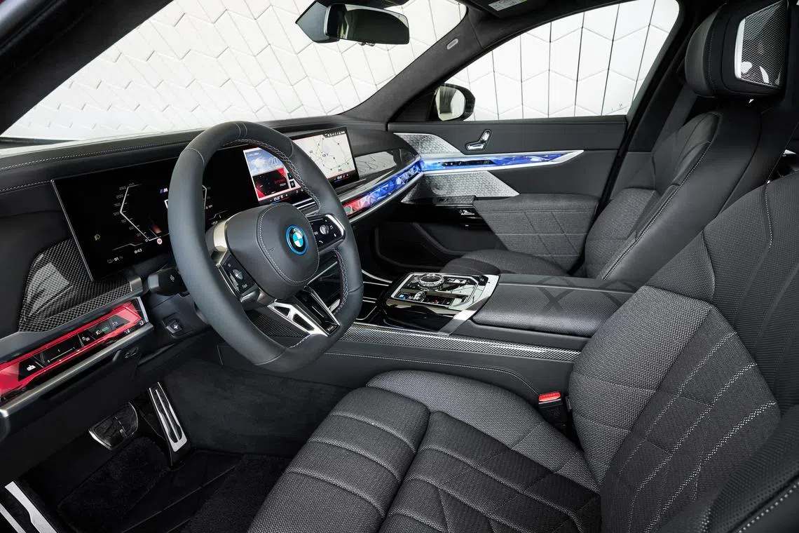 But if you scale all that up, you have the i7 M70, which is not only the latest BMW to roll into Singapore, but also the most powerful. Its motors really make you think the combustion engine’s day is done. Without noise or any sense of effort, they biff out 660 horsepower, enough to send even the i7’s gigantic body to 100 kmh in only 3.7 seconds.