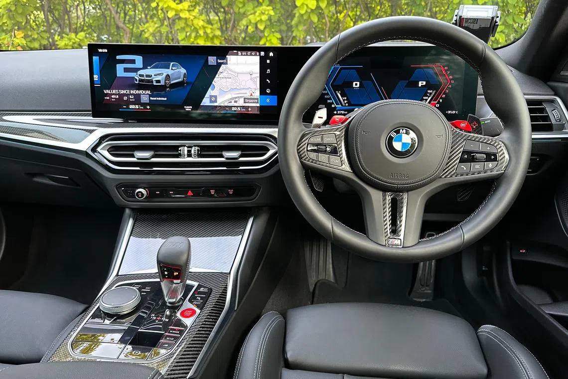 Even compared to the luxurious 520i and i7, the M2 Coupe doesn’t feel Spartan inside. Its dashboard is carried over from the larger 3 Series, so it has the same austere presentation and slightly drab design, but to properly set the tone you can have it in carbon fibre, the lightweight stuff that Formula 1 racing cars are made of.
