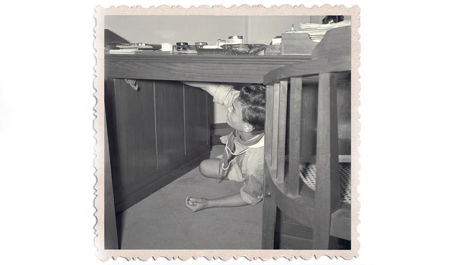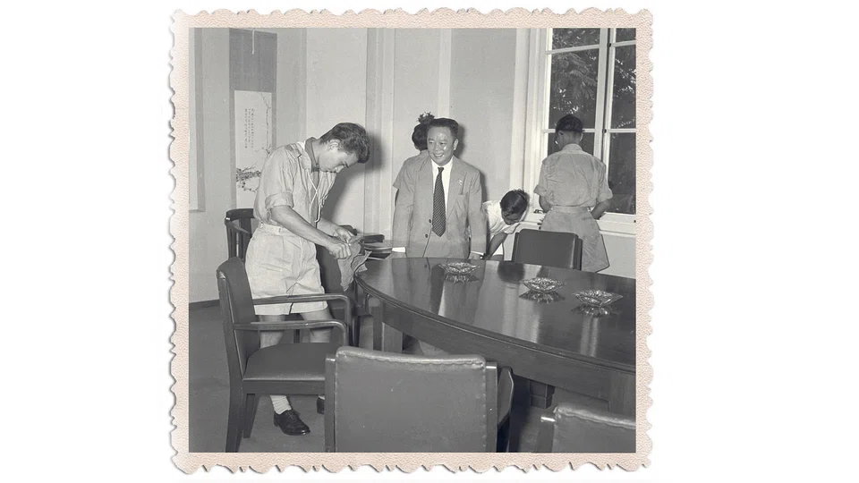 In 1957, as seen in the photos, scouts are working at the Chief Minister's Office in Assembly House. Nearly 6,000 scouts and cubs took part that year, and raised about S$10,000 for the building of a new scout headquarters at Clemenceau Avenue.