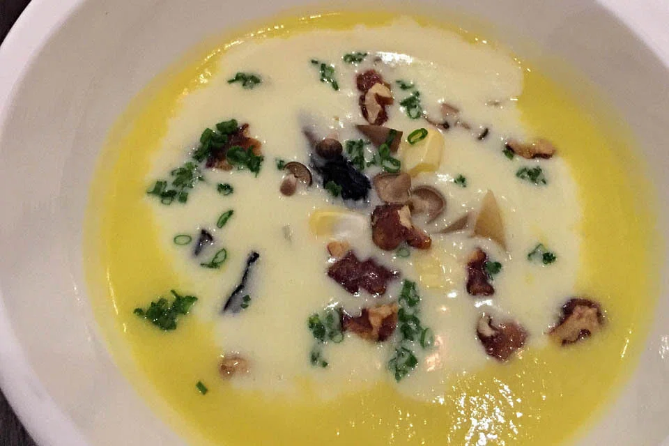 In fact, our meal is filled with little killjoys which conspire to trip up each dish in small but distracting ways. A creamy corn and polenta soup (S$12) gets a tangy contrast with sour cream and interesting bits to chew like mushroom cubes, corn niblets and candied walnuts, but some of the walnuts seem disgruntled enough to let loose a hit of sappiness to spoil the flow.