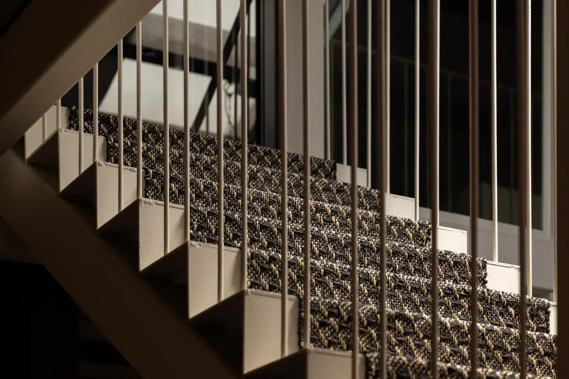 Soft textures are a feature, such as the sisal runner on the staircase, and new lamps at the stairwell and dining room. “We used banana fibre paper to create the dining pendant lamp,” explains Goy. “The patterns on the paper were holes created during the drying of the paper pulp set within the structure of the strings.”