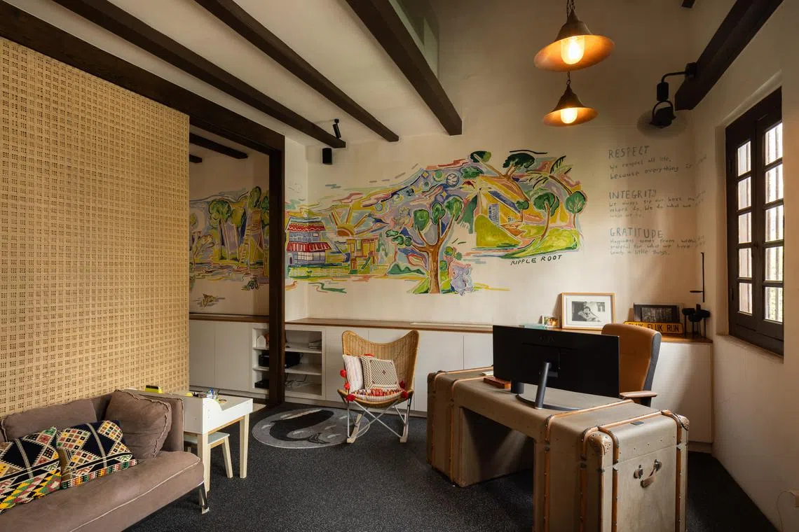 Many have been adapted to suit modern needs, including this one in the central part of town. The owner, who lives here with her fellow entrepreneur husband and three young children, shares that her family was drawn to shophouse living “where generations of stories have unfolded”.