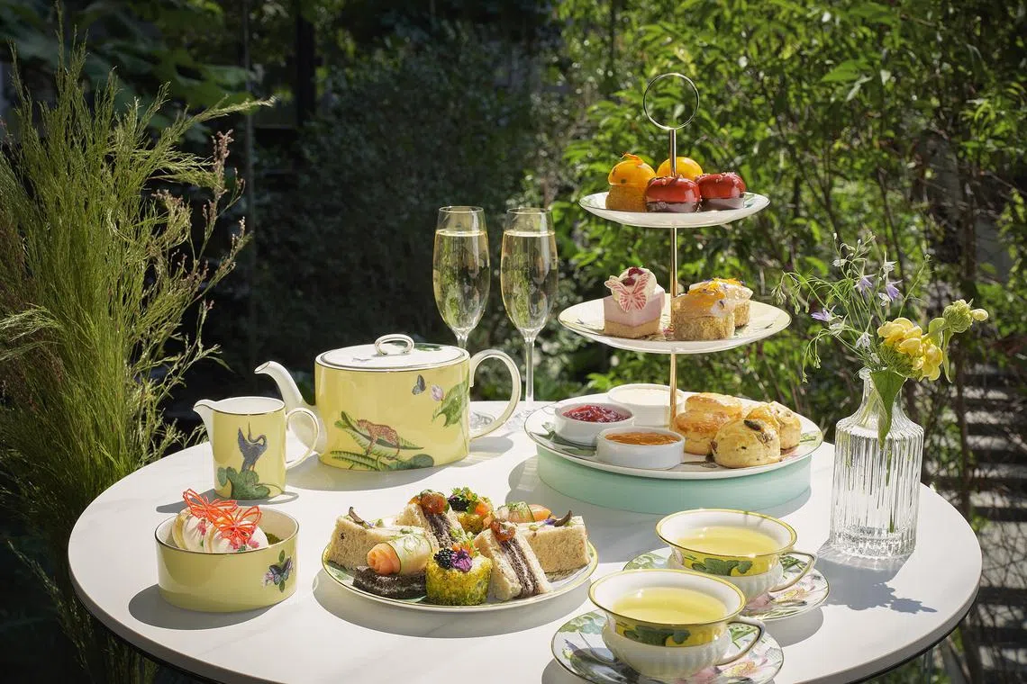 The void on the 11th storey contains the Garden Terrace. Here, a central lawn lined with sculptural trees, planter beds, garden seats and water features provides an ideal backdrop for intimate outdoor events. On the same floor is champagne and oyster bar Florette, where guests can partake in a curated cocktail programme inspired by the four sky gardens, or enjoy a whimsical afternoon tea served in partnership with Wedgwood.
