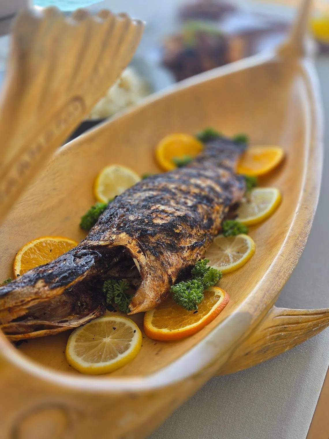 While we were out exploring, the crew prepared a plated version of the boodle feast, a Filipino communal meal traditionally spread on banana leaves. Among others, there was sinuglaw – a popular Visayan appetiser combining pork belly and ceviche – grilled pork and chicken and of course, the Filipino staple, garlic rice. The highlight, though, was a fresh Asian sea bass which literally came hot off a barbecue grill secured onto one of the outriggers. Nice.