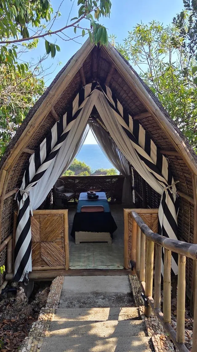 Constructed from native bamboo and wood, with nipa palm leaves for its pitched roof and oversized swing doors, the Instagram-friendly “hut” builds anticipation for your treatment.