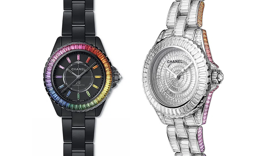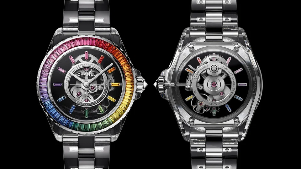 He likens the new Chanel Electro collection to a performance of colours, "inviting our classics to take turns on this stage and to draw inspiration from the codes of this world". Unveiled at the 2021 Watches and Wonders, Chanel's iconic J12 is resplendent in graphic and vibrant hues, a gradation of baguette-cut rainbow sapphires illuminating its bezels, dials, oscillating weights and bracelets. A bold tribute to the aesthetic culture of the 90s, Chanel's J12 Electro Collection is also an inspiration for the future.
