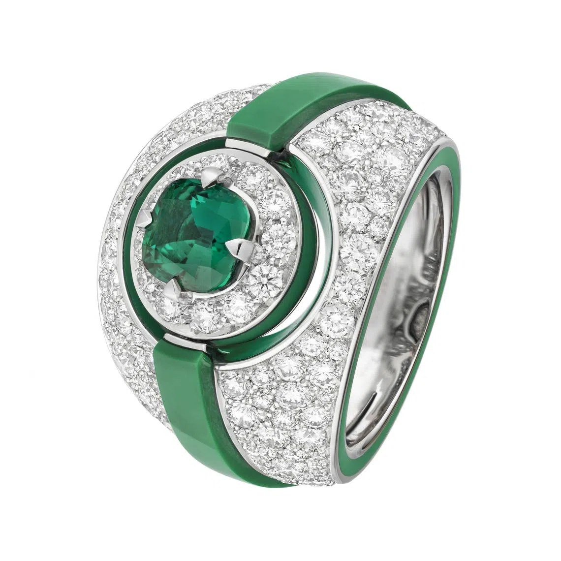 Aesthetically, these are pieces that are refined, streamlined and articulated, so the jewellery moves as the body – and sportswear – does. While chevron motifs evoke rhythm and speed, the generous and surprising use of colour injects energy and dynamism. At the same time, key symbols of the house appear, in new forms and unexpected ways.
