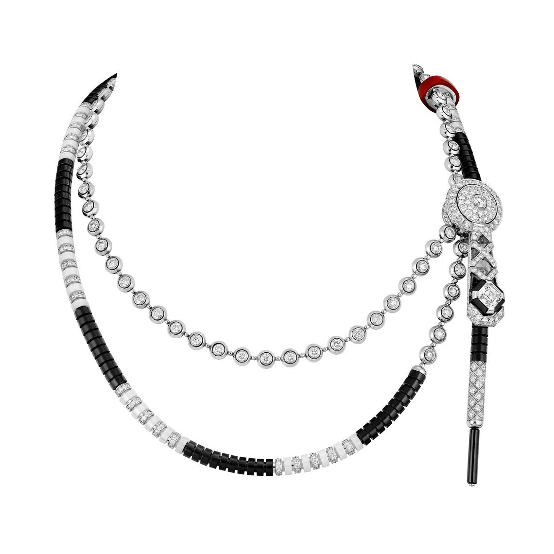 Specifically, the Gold Slider Black and White necklace incorporates key components of the Sport collection, including the tubular chain, the quilted motif and the “sport cord” or drawstring. With the slider, the necklace can be worn short as a choker or long as a sautoir, perfectly representing the freedom and savoir faire that is at the heart of Chanel’s Sport High Jewellery collection.
