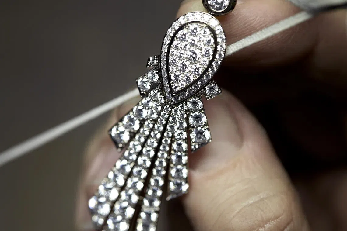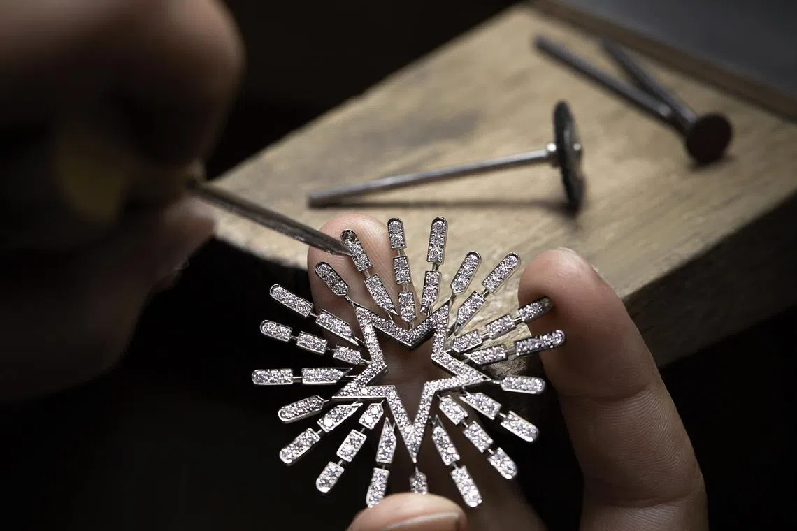 In addition to diamonds - which have been selected in a variety of shapes to create depth and different graphic rhythms - he also introduced colour, using gemstones to represent the celestial universe: blue and yellow diamonds and sapphires, opals and rubies.