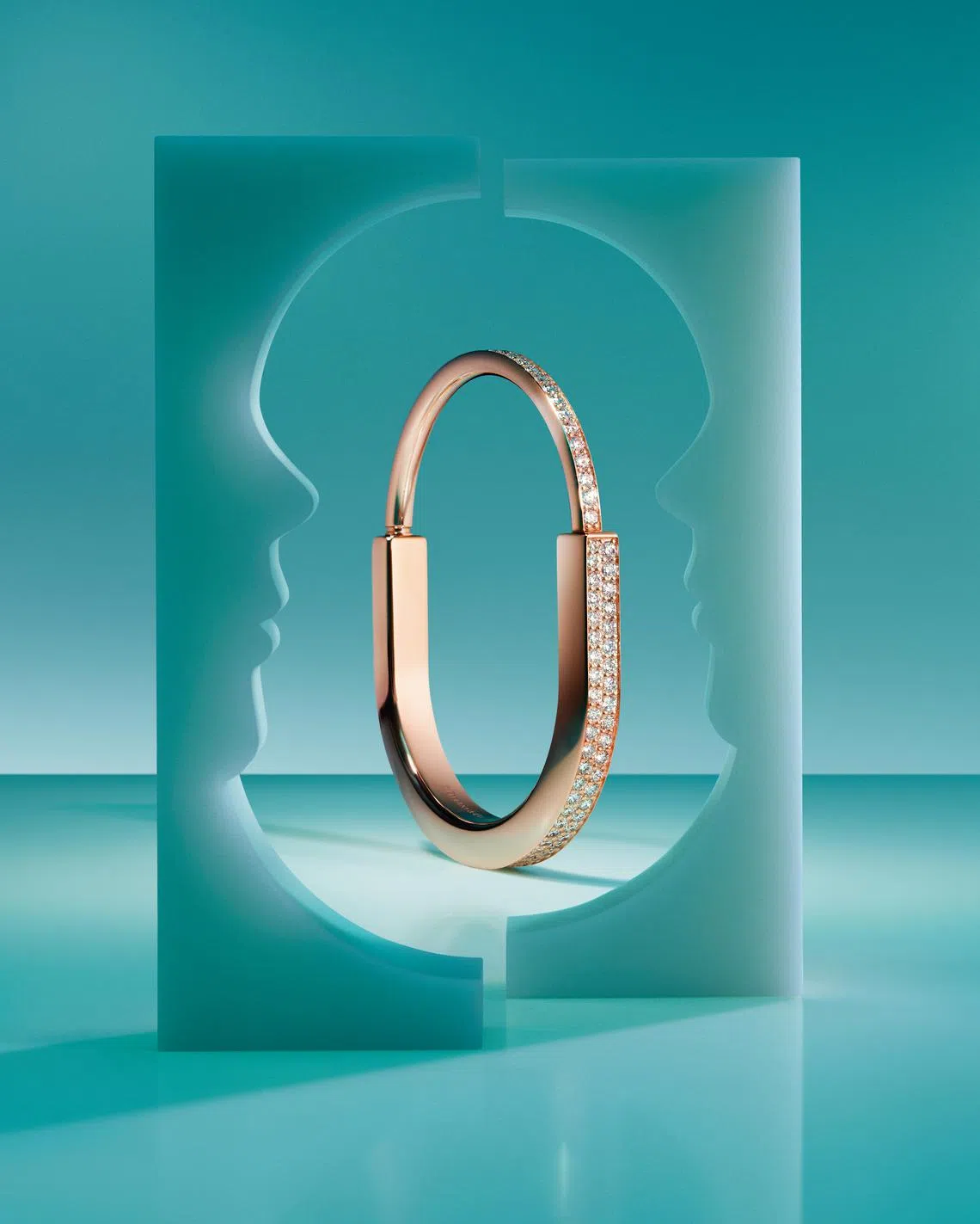 Lock’s innovative form mimics the shape and functionality of a padlock, with two U-shaped parts opening and closing seamlessly to become a bracelet that perfectly hugs the wrist. The piece is admired for its clasp, which is designed to swivel gracefully into place, just like a padlock. The pinnacle of craft and inventiveness, this particular component alone took a year-long collaboration between Tiffany’s design and engineering teams to perfect.