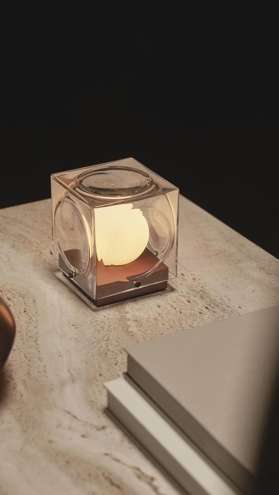 British designer Lee Broom’s portable lighting fixture was inspired by architectural glass blocks ubiquitous in many buildings of the Modernist era. Produced in the United Kingdom at Broom’s London factory, it is available in both frosted and clear glass; bases come in brushed gold, brushed silver or brushed bronze. The versatile, dimmable lamp can also be used outdoors. Available at Space Furniture.