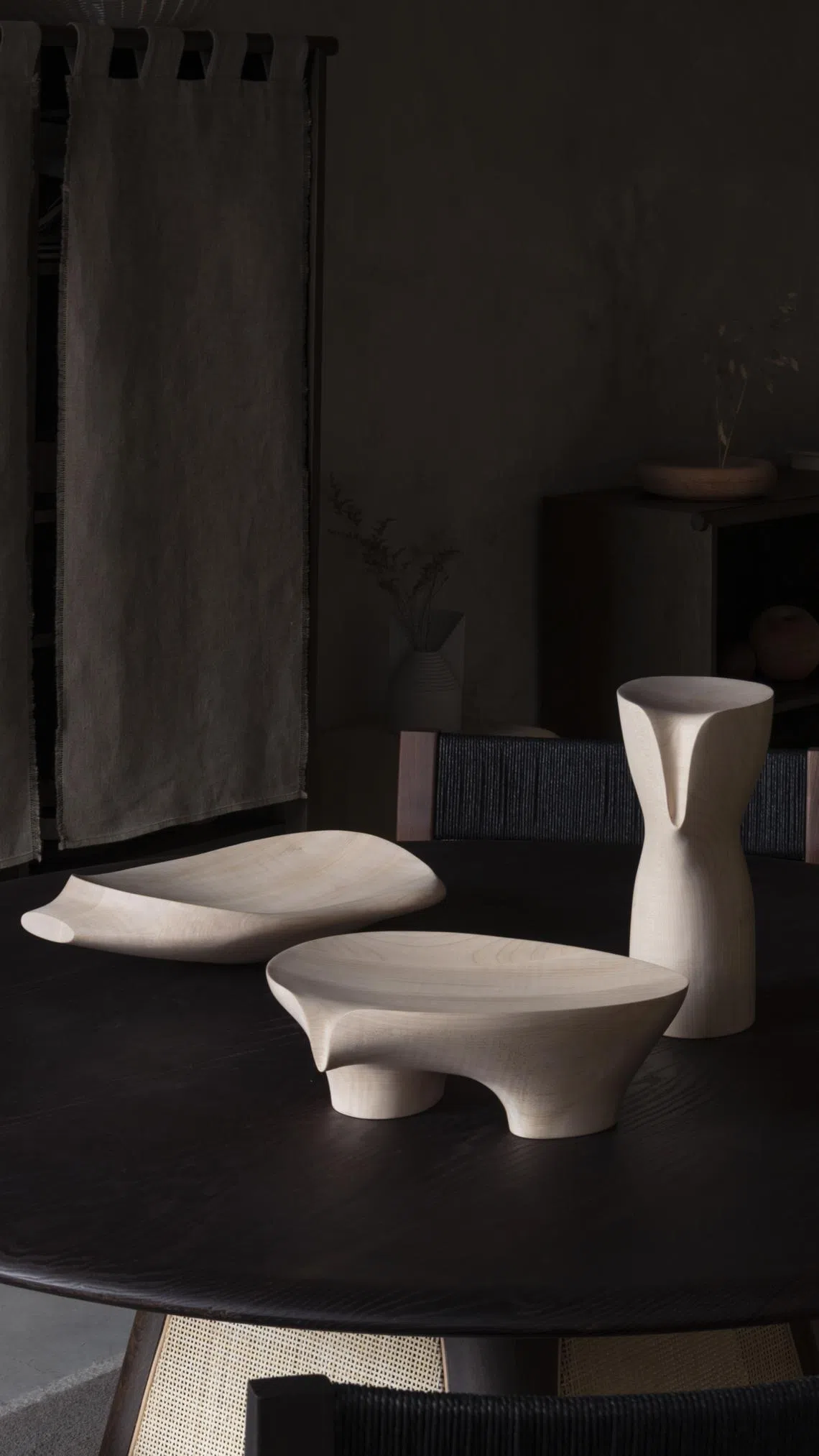 Helmed by Singaporean Gabriel Tan, Porto-based design brand Origin Made not only highlights its designers but also each design’s makers. For example, the Drip sculptures are designed by Theophile de Bascher and handcrafted by Carlos Barbosa. The trio of maple wood sculptures are enigmatic objects of “frozen” material, and can also be used as pedestals for fruit, jewellery and other small items. Available at origin-made.com.
