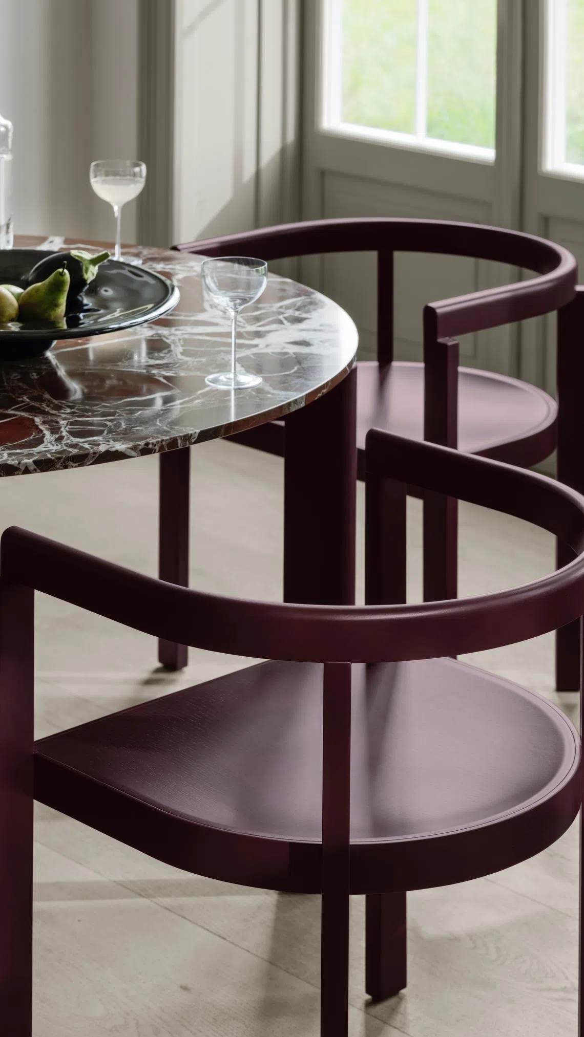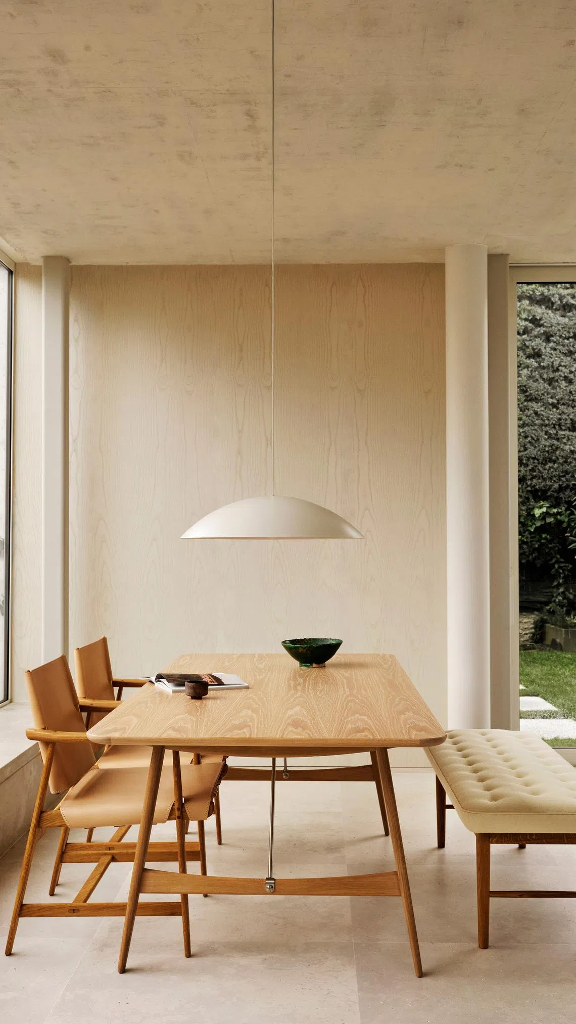 Designed by Borge Mogensen, Carl Hansen & Son’s Hunting table was first launched at the Copenhagen Cabinetmakers’ Guild furniture exhibition in 1950 and then relaunched in 2018. A larger version was introduced this year for bigger mealtime gatherings. Part of the Huntsman collection inspired by hunting lodges, it features a structure of brass supports and solid wood components. Available at Xtra.