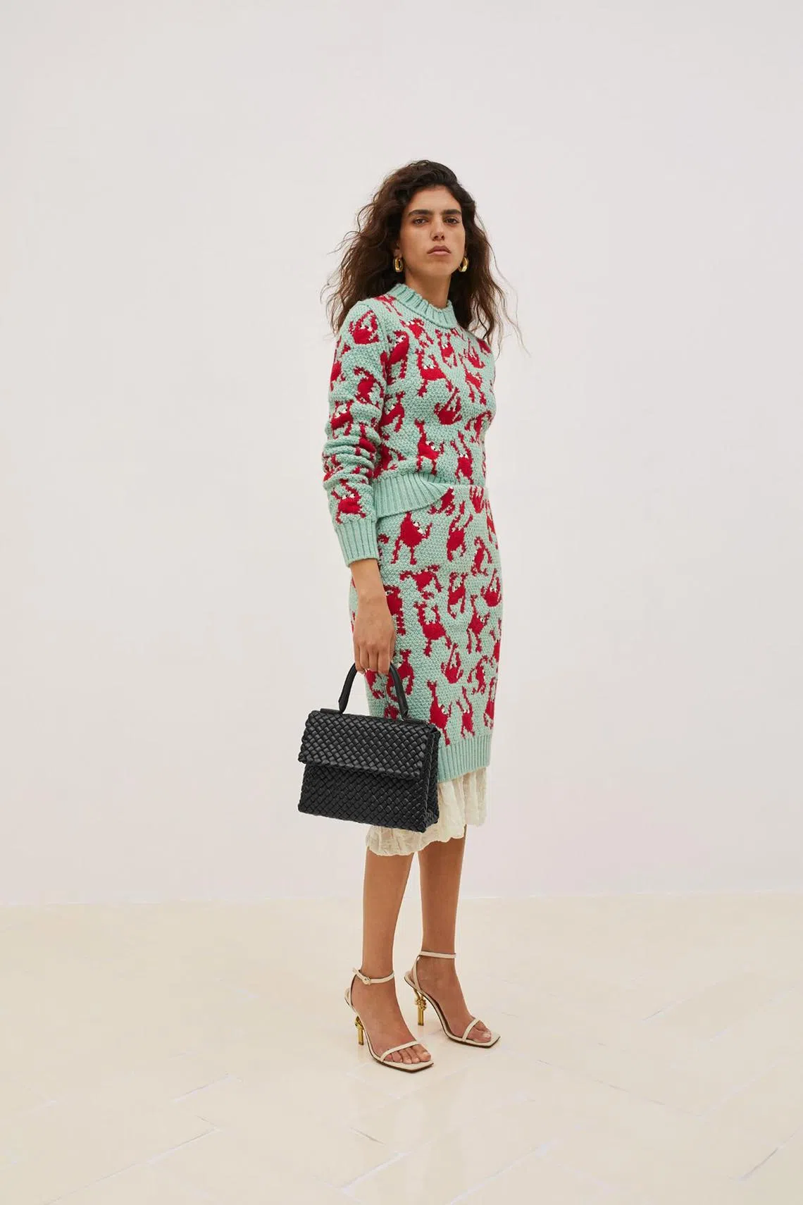 There’s also this jacquard set from Bottega Veneta’s pre-spring 2024 collection, comprising a jumper (S$4,350) and skirt (S$3,210). The red crab motif provides a subtle, slightly humorous nod to the season, without screaming “walking hongbao”, making it an easy look to pull off even after Chinese New Year.