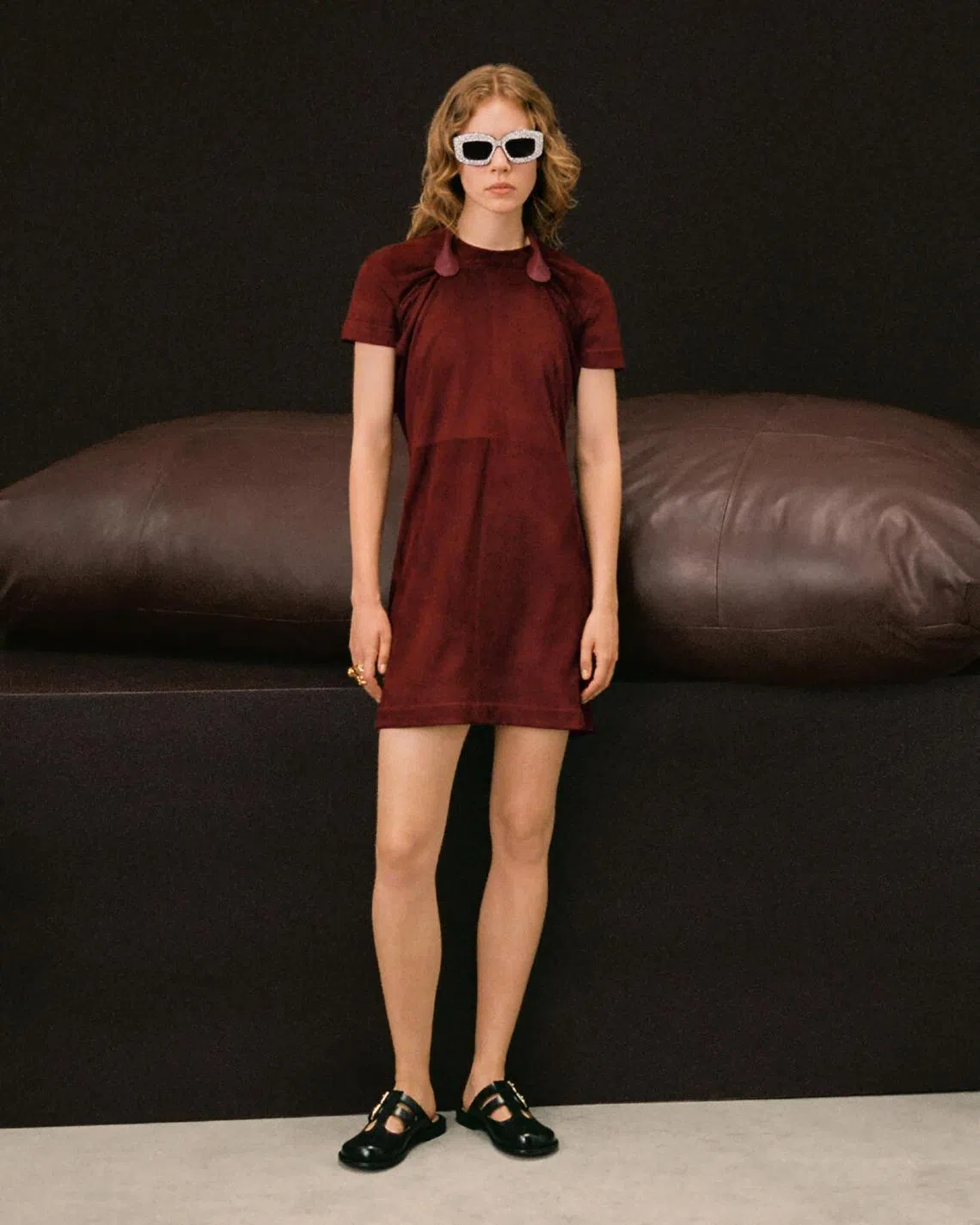 Exemplifying this trend is this mahogany-toned suede number (S$6,950) from Loewe’s pre-spring 2024 collection. With a leather bag handle cleverly moulded into a faux collar, this minidress exemplifies the creative spirit of streetwear, turning common tropes into new and unique interpretations. Its reddish colour is also perfect for the season.