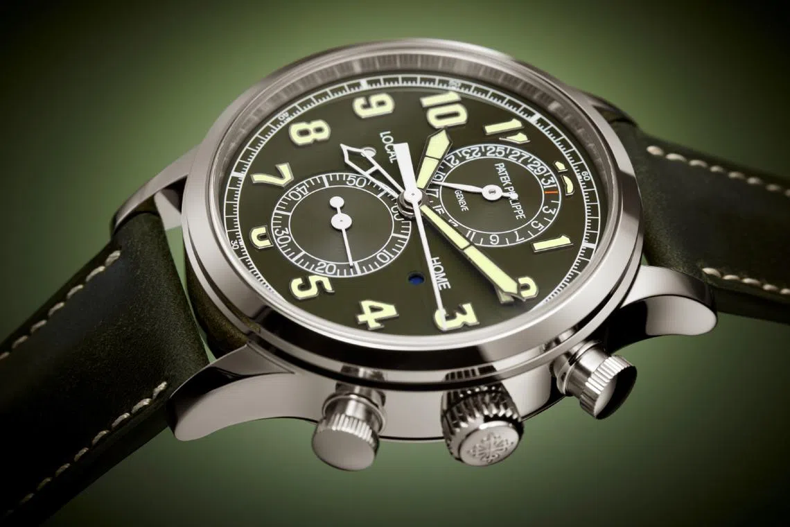 Their design language is steeped in aviation heritage: Large, luminescent Arabic numerals, bold hands and oversized pushers – all to enhance legibility. But with the craftsmanship of Patek Philippe, these cues are enhanced through the meticulous detailing expected of haute horlogerie.